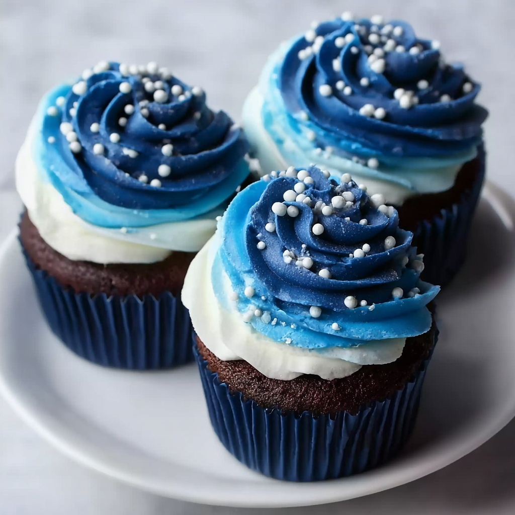 Delightfully moist and vibrant Blue Velvet Cupcakes topped with a creamy, tangy cream cheese frosting. These classic American treats showcase a beautiful blue hue with subtle cocoa flavor, perfect for parties or any festive occasion.