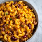 This Chili Mac and Cheese recipe combines hearty chili with creamy macaroni and cheese for a comforting and satisfying meal. Ground beef, flavorful chili seasoning, and kidney beans simmer together before being mixed with rich, cheesy pasta and baked to perfection with a melted cheddar topping. Ideal for a family dinner or casual gathering.