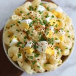 This Creamy Deviled Egg Macaroni Salad combines tender elbow macaroni with chopped hard-boiled eggs and a flavorful, creamy dressing. Enhanced by dill pickle relish, celery, and red onion, it’s a perfect dish for picnics, potlucks, or a satisfying side on warm days. The salad is chilled to meld the flavors beautifully, offering a classic twist on traditional macaroni salad with a deviled egg-inspired kick.