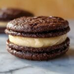 Once the cakes are completely cool, spread a generous dollop of the coconut-pecan filling onto the flat side of one cake. Sandwich it with another cake, pressing lightly to spread the filling to the edges. Repeat this process with all the cakes and filling for a batch of show-stopping German Chocolate Whoopie Pies.
