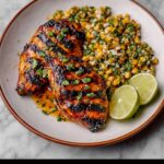 This Grilled Hot Honey Chicken with Lime Corn Salad is a flavorful and vibrant dish perfect for a quick weeknight dinner or casual gathering. Juicy grilled chicken breasts are coated in a smoky garlic and paprika rub, then glazed with a sweet and spicy hot honey sauce. Paired with a refreshing lime corn salad bursting with red bell pepper, red onion, and fresh cilantro, this recipe offers a delicious balance of heat, sweetness, and tang.
