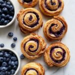 These homemade blueberry cruffins combine the flaky, buttery texture of croissants with the shape and convenience of muffins, filled with a luscious blueberry compote and topped with a sweet glaze and crunchy raw sugar. Perfect for breakfast or a delightful snack.