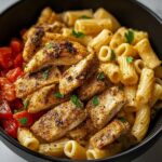 Remove the chicken from the skillet and let it rest for a few minutes. Resting helps the juices redistribute so that every bite is juicy and tender. After that, slice the chicken into strips—perfect for layering over your creamy pasta.