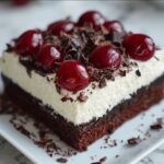 - Top with Chocolate and Whipped Cream: Once the slice is set, decorate the top with whipped cream, sprinkle with chocolate shavings or grated chocolate, and arrange the reserved cherries for an attractive garnish.