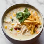 This comforting one-pot white chicken chili features tender chicken, creamy beans, and a blend of mild spices simmered to perfection. Enriched with sour cream and heavy cream, it’s a hearty and flavorful dish perfect for cozy dinners, served best with tortilla chips and shredded cheese.