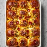 These Pepperoni Pizza Hawaiian Rolls are a deliciously easy and fun twist on classic pizza. Featuring soft, sweet Hawaiian rolls layered with savory pizza sauce, melted mozzarella, pepperoni slices, and a buttery seasoned topping, this handheld snack is perfect for parties, game days, or a quick family meal. Baked to golden perfection and finished with a sprinkle of parmesan and fresh herbs, these rolls combine the best flavors of pizza into a convenient slider form.
