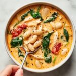 This Rich, Creamy Marry Me Chicken Soup is a comforting and flavorful dish featuring tender chicken, sun-dried tomatoes, pesto, gnocchi, and fresh spinach all simmered in a creamy chicken broth. Perfect for a cozy meal, this soup blends Mediterranean-inspired ingredients with hearty textures, delivering a luscious and satisfying dinner in about 50 minutes.