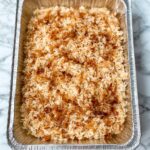 8. Cover and bake: Cover the baking dish tightly with aluminum foil and bake for 30 minutes, allowing the rice to absorb the flavors and cook through.