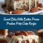 Indulge in this delectable Sweet Bliss With Butter Pecan Praline Poke Cake, a luscious dessert featuring moist butter pecan cake soaked with rich praline sauce, topped with fluffy whipped topping, caramel drizzle, and crunchy pecans. Perfect for celebrations or a comforting sweet treat.