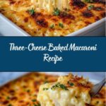 This comforting Three-Cheese Baked Macaroni recipe features elbow macaroni enveloped in a creamy blend of cheddar, mozzarella, and Parmesan cheese, baked to golden perfection with a crunchy breadcrumb topping. A classic, crowd-pleasing casserole perfect for weeknight dinners or cozy gatherings.