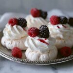 8. Serve and Enjoy: Serve the mini pavlovas chilled to enjoy their crisp exterior and creamy coconut filling.