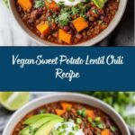 This Vegan Sweet Potato Lentil Chili is a hearty, nutritious, and comforting dish perfect for chilly days. Packed with fiber-rich lentils and naturally sweet cubed sweet potatoes, it features a flavorful blend of spices including cumin, chili powder, and smoked paprika that create a warm, smoky aroma. This vegan-friendly chili is simmered to perfection in a vegetable broth base with diced tomatoes and sautéed vegetables, making it a wholesome meal that’s both filling and easy to prepare for a family-sized serving.