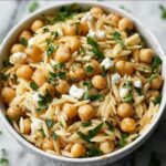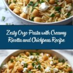 This Zesty Orzo Pasta with Creamy Ricotta and Protein-Packed Chickpeas is a vibrant and comforting dish perfect for a quick and nutritious meal. Featuring tender orzo pasta cooked in vegetable broth, sautéed chickpeas, and a luscious ricotta and lemon sauce, it’s a delightful combination of creamy texture and fresh citrus flavors, garnished with fragrant parsley.
